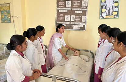 Nursing foundation lab is equipped with ten beds including all sophisticated equipment’s and advanced manikins, simulators and interactive models like CPR manikins, Surgical & Medical Instruments, Human Torso Manikin for gaining skills. The students gain experience and confidence by handling and performing procedures on manikins.
