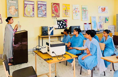 The College has well-ventilated classrooms equipped with all necessary facilities. To enhance academic activities such as lectures, seminars, and presentations, the institute provides a comprehensive audio visual setup that includes a TV, DVD player, OHP with white screens, slide projector, sound system, models, and charts for the use of both faculty and staff.